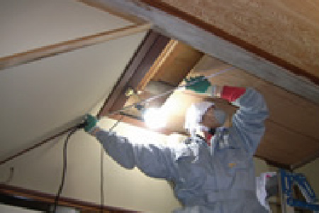 ③追い出し作業の実施(必要に応じて屋根裏清掃、消毒、断熱材の交換を行います)
